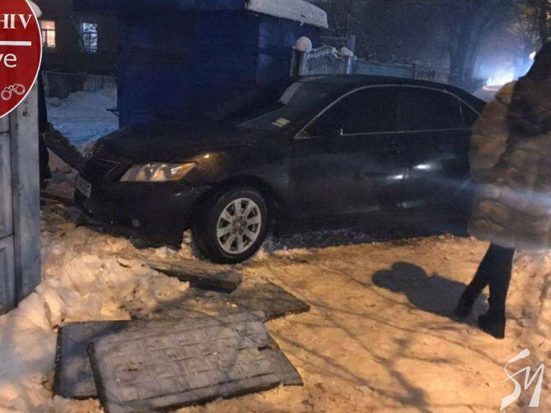 У Чернігові на початку вул. Музична чорна Toyota Camry з держномером СВ9943ВТ заїхала у бетонний паркан і поламала його.