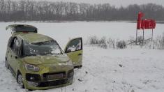 Жінка-водій не втримала на засніженій трасі навантажену малолітражку