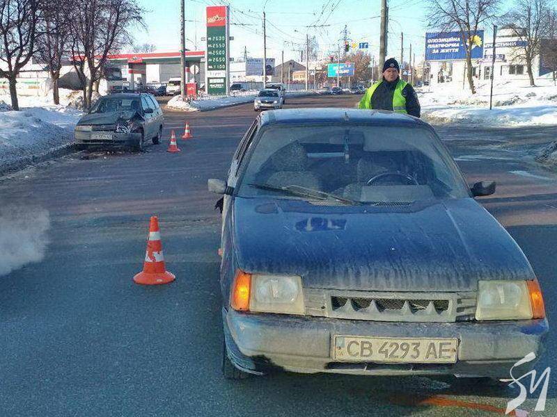 На вулиці Козацька в Чернігові поблизу тієї автозаправки, де частенько й відбуваються ДТП, російський доробок «АвтоВАЗу» наздогнав і піддав у корму доробку українського ЗАЗу – «Славуті» ЗАЗ-1103.