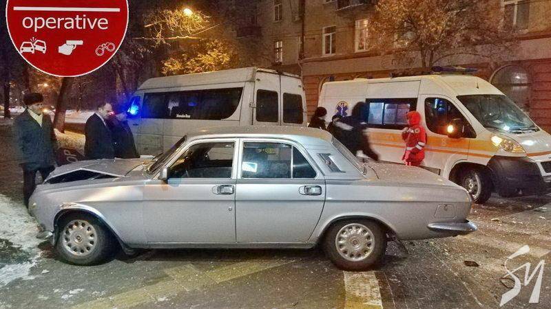 Там в суботу, 26 січня зіткнулись Mercedes Sprinter з табличкою під склом «Городня» та ГАЗ-24 «Волга», що колись, років 40 тому, вважалася в СРСР престижним легковиком.
