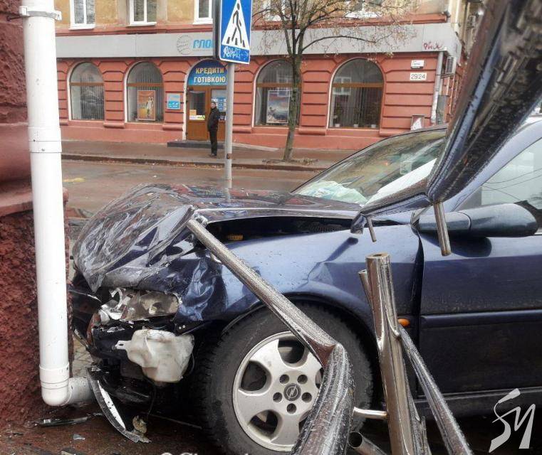 Після зіткнення Opel ще й втулився в кут будівлі нового готелю.