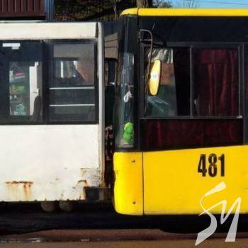 Жовтогарячий лайнер «ЛАЗ» із бортовим номером 481 комунального підприємства «Чернігівське тролейбусне управління»… втулив у «газелеподібну» іржаву маршрутку.