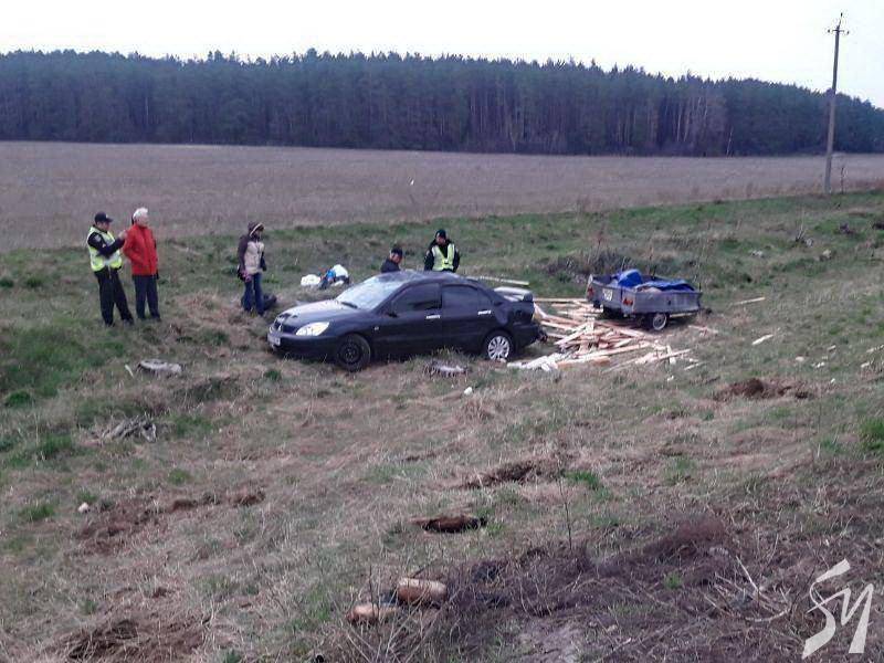 Легковик «Mitsubishi Lancer» з київським держномером АА1746НР буксирував прицеп, який пішов у розкачку і вискочив на зустрічну смугу, де в той момент їхав легковик Skoda з держномером АА3314ОЕ.