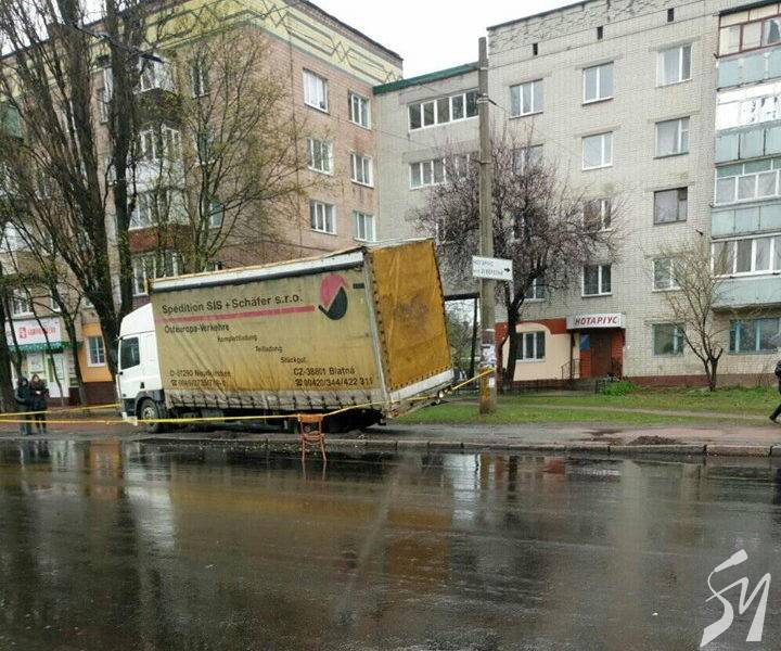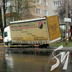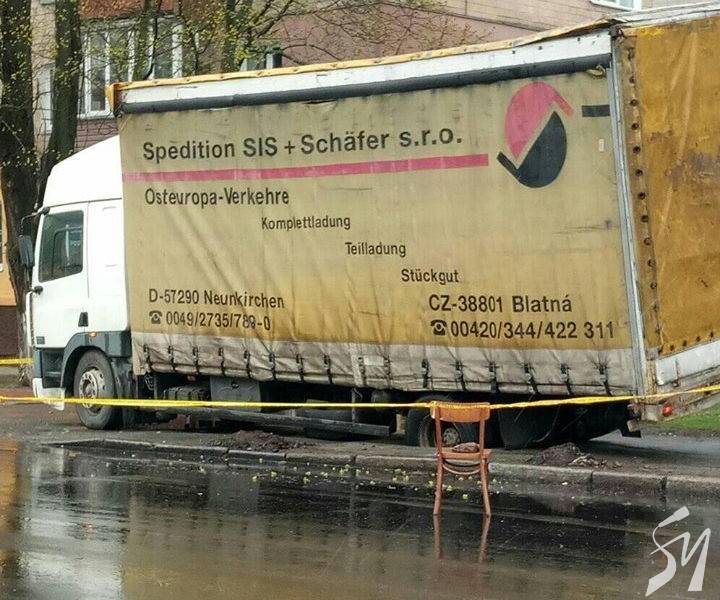 В Чернігові вантажівка провалилася крізь тротуар