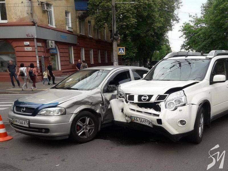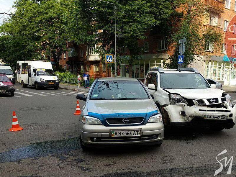 Це Opel початку 2000-х років з держномером АМ4566АТ та київський Nissan X-Trail також вже не нової моделі з номером АА3649ОК.