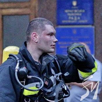 «… раптом, у вечірню тишу міста ввірвався тривожний сигнал сирени пожежної машини. Знову пожежа десь. З балкону помітив димок над будинком Чернігівської районної адміністрації. Фотокамера завжди напоготові і вперед», – розповів Віктор Кошмал про вчорашню пригоду.
