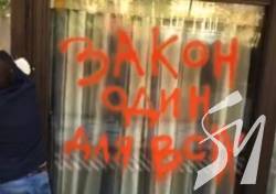 На склі «блокувальники» написали фарбою «карантин» та «закон один для всіх».