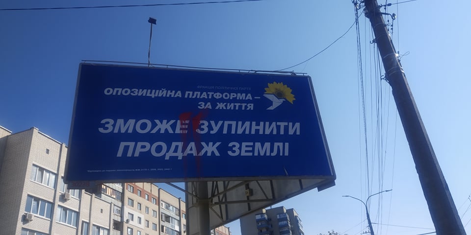 Сітілайт від партії «Європейська Солідарність» в центрі міста розмалювали чорним маркером: