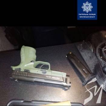 Під час огляду у молодика виявили предмет, схожий на пістолет, та магазин до нього, споряджений набоями. Охоронці порядку встановили особу затриманого. Ним виявився 28-річний чернігівець.