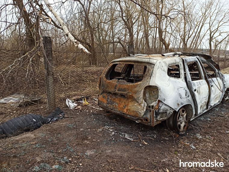 «За попередньою версією, це був обстріл автомобіля. Авто злетіло в кювет, з машини витягли водія і, схоже, перевірили, бо навколо були розкидані документи. Потім цю машину витягнули, закинули тіло на заднє сидіння і підпалили машину», — каже волонтер. За знайденими документами, це може бути Віктор Кирик.