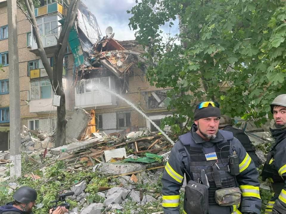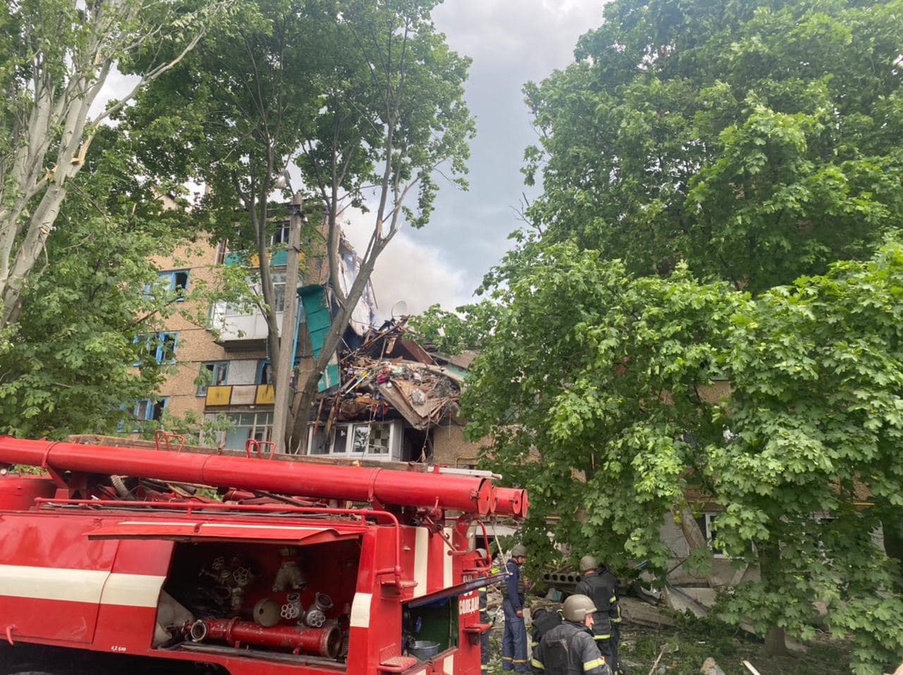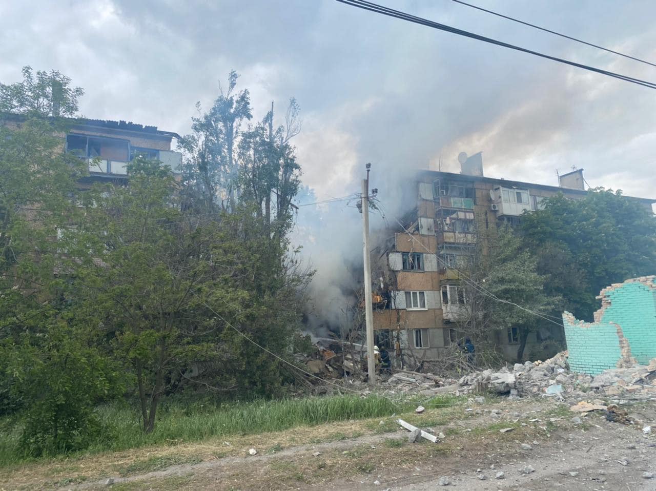 Сьогодні о 13:30 у Бахмуті внаслідок ракетного обстрілу сталося влучання у п’ятиповерхівку, внаслідок чого у другому під’їзді стався обвал конструктивних елементів будинку з п’ятого по перший поверхи з пожежею.