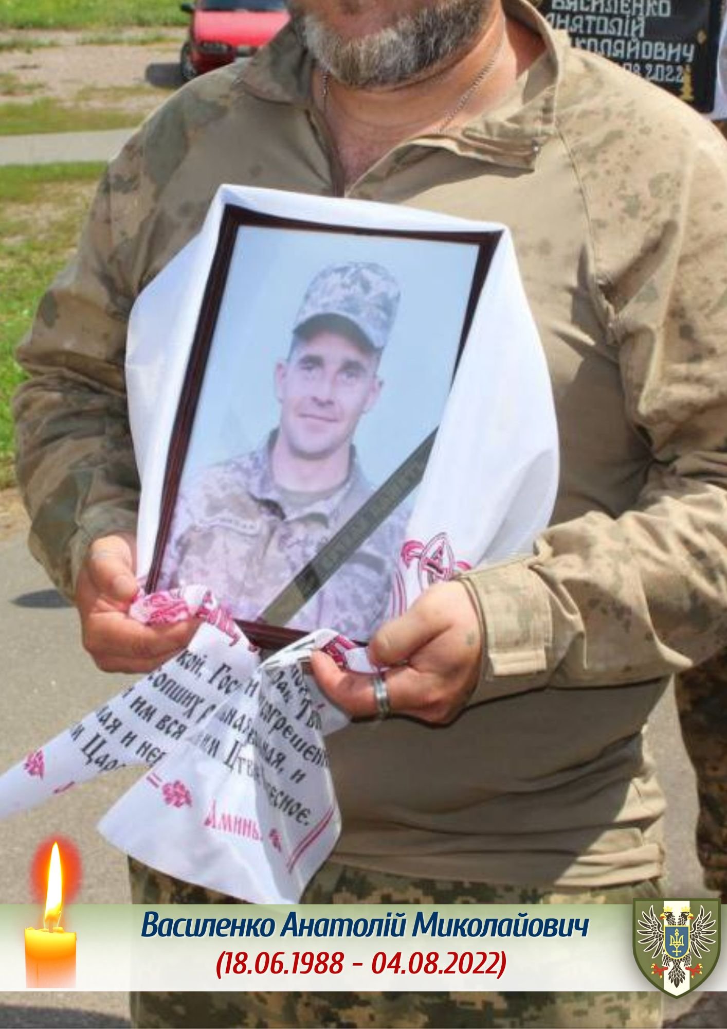 Анатолій Василенко народився 18 червня 1988 року в селі Синяківщина на Полтавщині. З першого дня повномасштабного ворожого вторгнення Анатолій стояв серед Захисників Чернігівщини та мужньо обороняв рідний край. Пізніше він потрапив до складу 58-ї окремої механізованої бригади, з якою виконував бойові завдання на сході України.