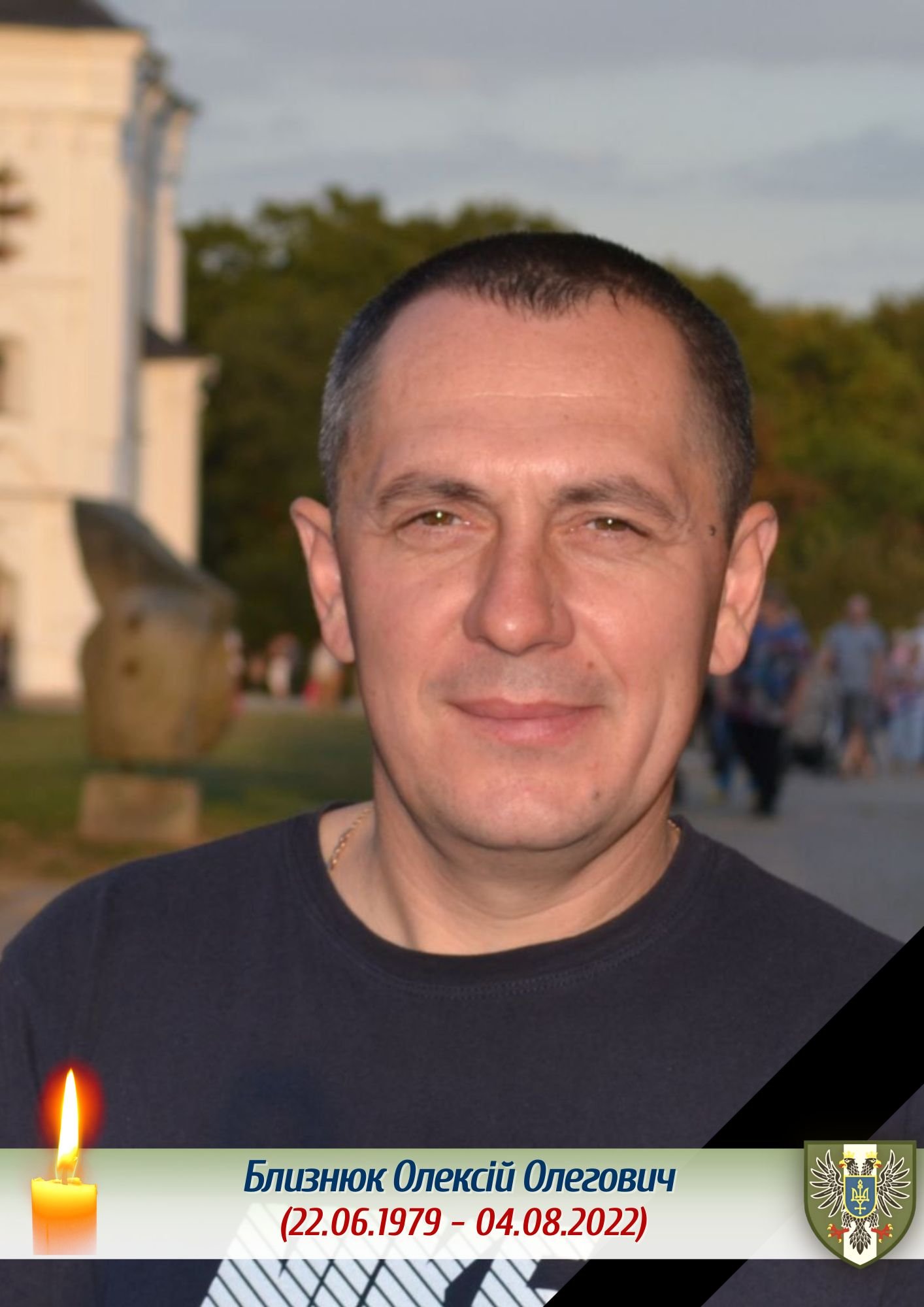 Нажаль, 4 серпня під час захисту територіальної цілісності та недоторканості України Близнюк Олексій потрапив під ворожий обстріл. Отримані ним травми виявилися несумісними з життям…