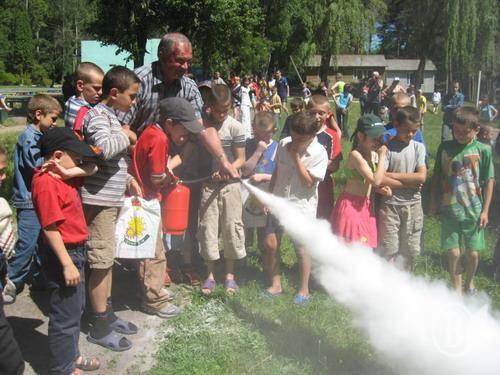 Наличие огнетушителей на объектах разного назначения, транспорте предопределяют степень их противопожарной защиты. Представитель коллективного предприятия "Пожтехника" продемонстрировал и предоставил возможность детям собственноручно проверить работу порошковых огнетушителей.