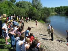 Тепла и солнечная погода способствовала проведению мероприятия, а все события разворачивались по предварительно разработанному сценарию. Сначала представители Черниговской спасательной станции на водах в живописном месте на берегу реки Снов рассказали и практически показали, как нужно вести себя на водоёмах, спасать утопающего и оказывать первую медицинскую помощь.