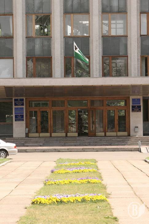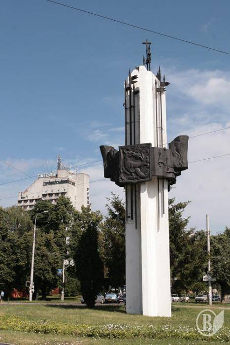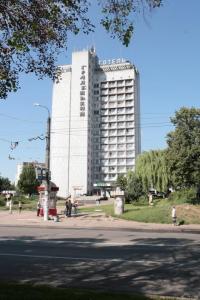Гостиница Градецкий, "китайская стена", стелла Дружбы народов, рыжая новостройка и старые шестнадцатиэтажки, областной совет и областная научная библиотека...