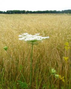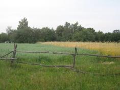 Местность с обеих сторон трассы на Михаил-Коцюбинское — классика полесского ландшафта. Яркие от разнотравья поля, одиночные развесистые деревья, поля овса, пшеницы и гречихи.