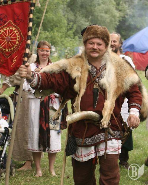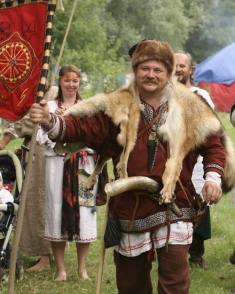 Возрождать прошлое необходимо, ведь в нем можно найти то, чего не хватает нам сегодня. А вот следующий мой собеседник считает, что нам нужно стремиться возродить идеалы языческих времен. Сергей Коливан, частный предприниматель из города Херсон. На фестиваль этот большой крепкий человечище приехал в костюме зажиточного купца, уже в пятый раз.