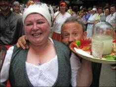 Николай Комар на ярмарке выступал в костюме Верки Сердючки. Ему пошили специальный бюстгальтер (фото: Виталий ЛИТВИН)