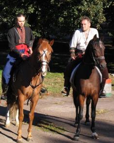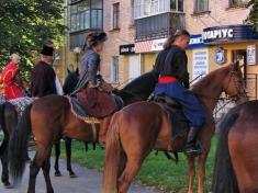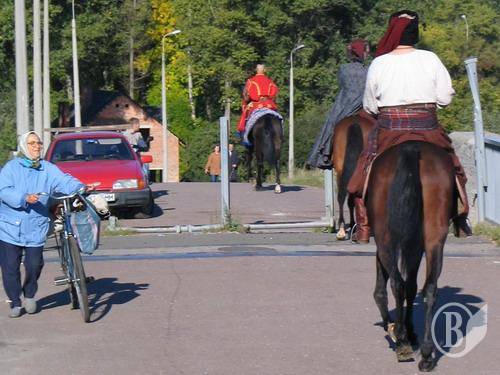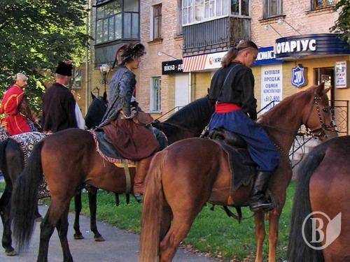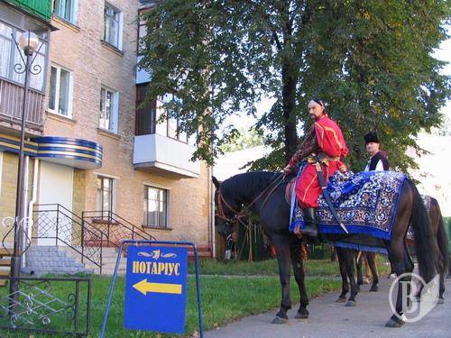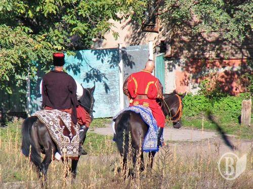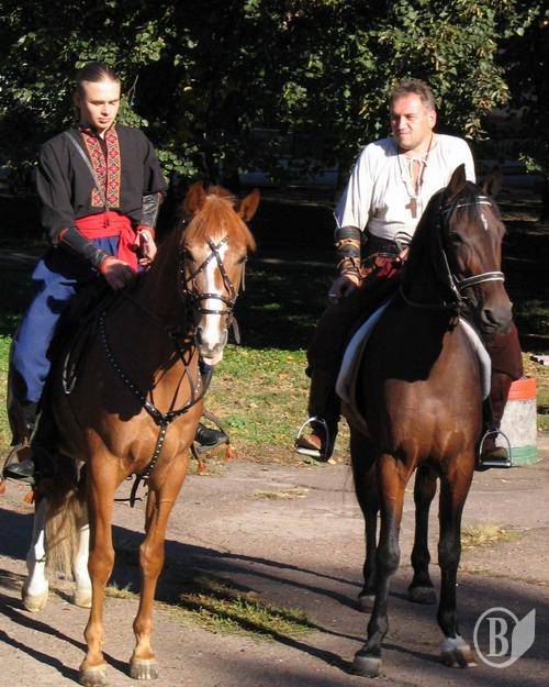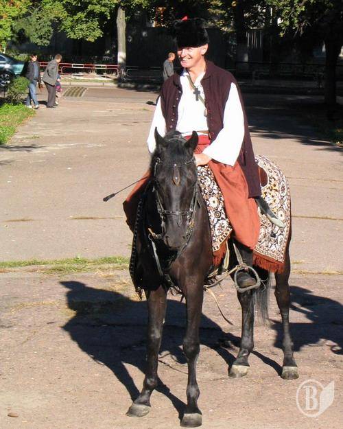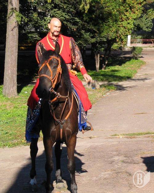 В городе Евгения не трудно узнать, потому что, хотя сам родом из Абхазии, на вид он – типичный украинский казак: черные усы, "оселедець", атлетичное телосложение. Шашка, конь, красная одежда, – его атрибуты, когда вместе с представителями черниговского казачества (того же, которому передано Катерининску церковь) Евгений принимает участие в показательных выступлениях на день города или другие праздники.