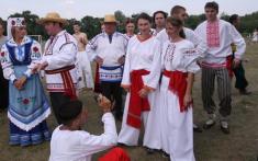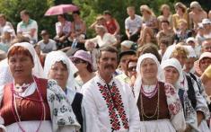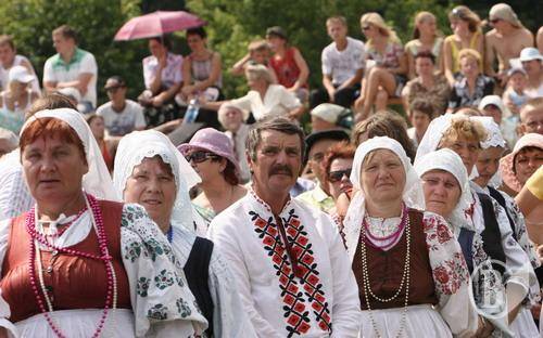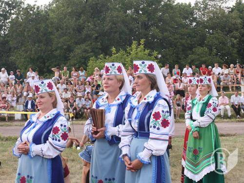Во время фестиваля на стадионе городка проходили выступления народных коллективов в национальной одежде.