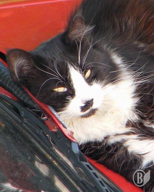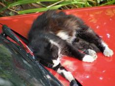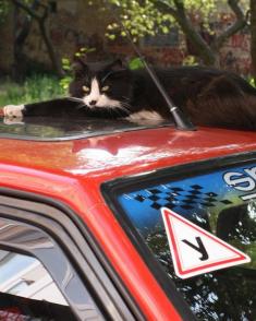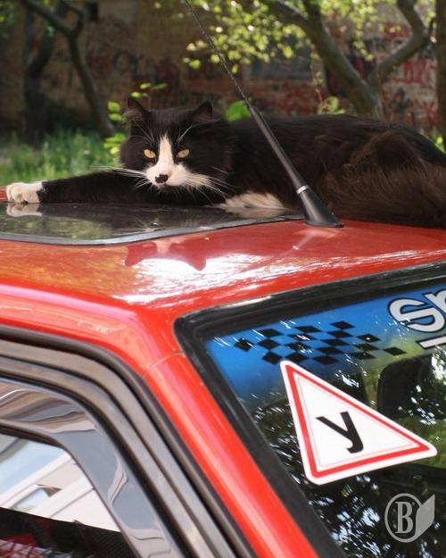 А это - невозмутимый символ величественного покоя и сладкой лености. Максимум - сползти с крыши на капот. Не больше.