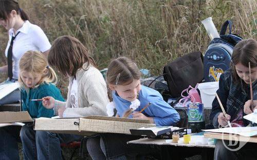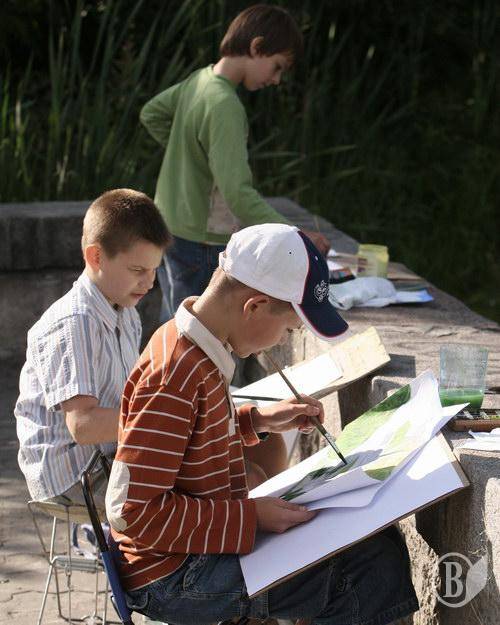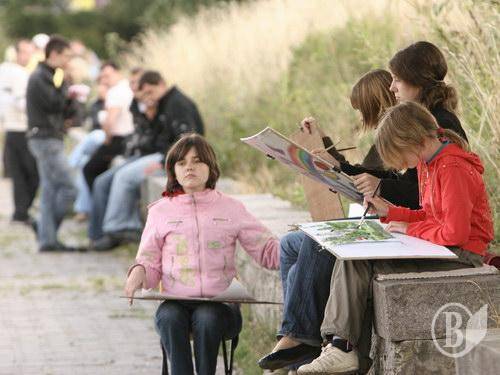 Воспитанники черниговской художественной школы учатся не только в удушающих помещениях аудиторий, но и на свободном воздухе – в живописных уголках, где течет река Десна и у нее впадает Стержень.