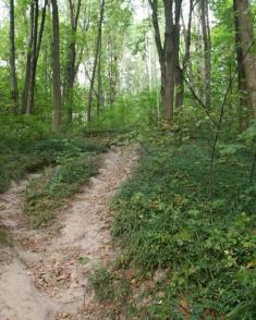 На холмах в Мезинском парке стоит Рыхловский пустынный монастырь. Стремительная тропинка ведёт от него в низину.