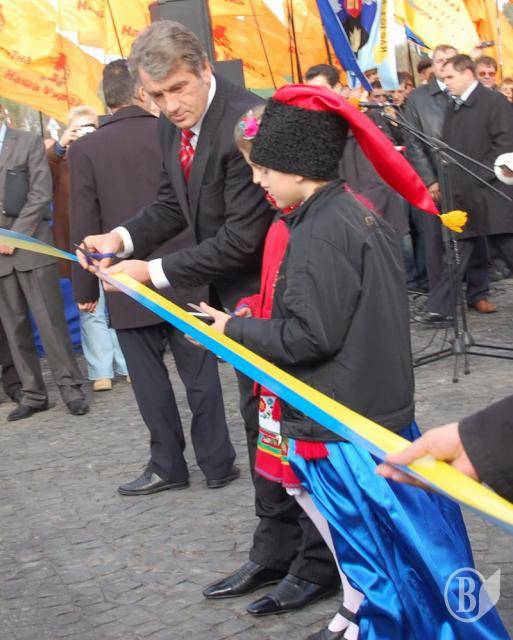 Вокруг изобиловали государственные флаги и "Нашей Украины", представителей делегаций, которые прибыли из многих регионов области на открытие Музея.