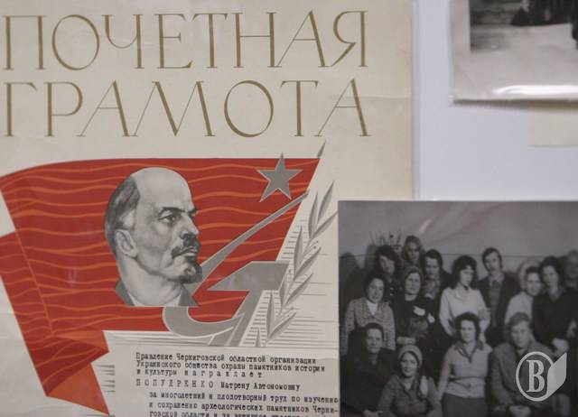 Она работала с известными археологами, исследовала Черниговщину. На выставке представлены экспонаты из разных уголков Черниговщины, Новгород-Северской земли и документы, которые рассказывают о творческих достижениях ветерана труда.