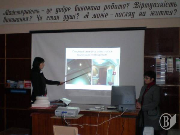 Информационные материалы, образцы тары, планшеты с ассортиментом декоративных штукатурок и структурной краски, стенды-образцы декоративного снаряжения поверхностей будут использоваться во время профподготовки учеников. Их предоставили Черниговский лицей железнодорожного транспорта, Черниговский строительный лицей, профлицей деревообрабатывающей промышленности и Нежинское ПТУ №11.