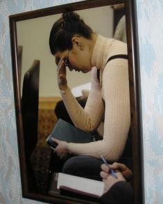 А тут якраз той випадок, коли можна поглянути на себе зі сторони, подивитися, як ти поводишся на конференціях і на інших публічних заходах,» - так сказала журналістка Ірина Мельник про виставку, яка відкрилася вчора у приміщенні благодійного фонду ім. О.Молодчого.