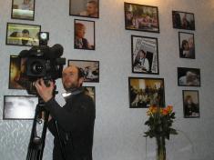 Це була виставка фотографій Віктора Кошмала. Півтори роки він відслідковував журналістів і телеоператорів під час їхньої роботи. Ловив їх у несподівані моменти, знаходив цікаві ракурси. А потім найбільш цікаві знімки передав організаторам виставки.