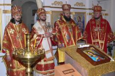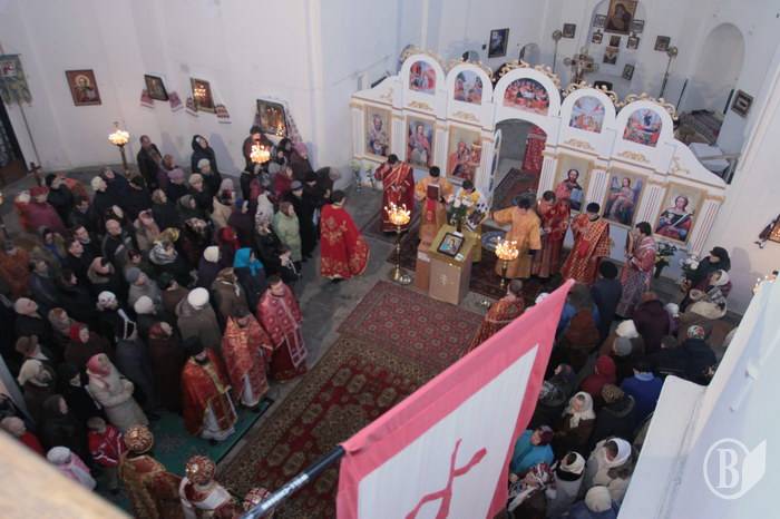 Божественная литургия в честь праздника длилась достаточно долго, больше двух часов. Вёл службу епископ Черниговский и Нежинский Илларион. Всё было очень торжественно, сакрально: и священники в праздничных одежах (сочетание красного и золотого цветов), и прихожане, и убранный храм, и две женщины в настоящих украинских костюмах.