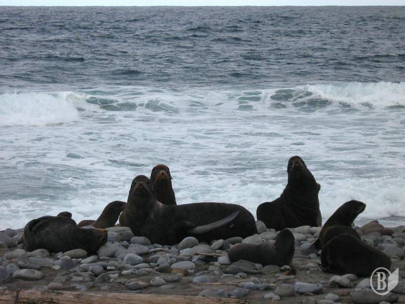 На Командорах нет ни одного дерева. Разве что небольшие кусты с погнутыми стволами, очень много грибов и ягод, морские котики и львы. Если взглянуть в энциклопедию, там будет сказано, что на Командорах очень сложный климат: в среднем 12 солнечных дней на год. За время, когда я там был, было 2 солнечных дня, три дня длился там шторм, остальное время – была просто мрачная погода, с ветром, тучами, дождём.