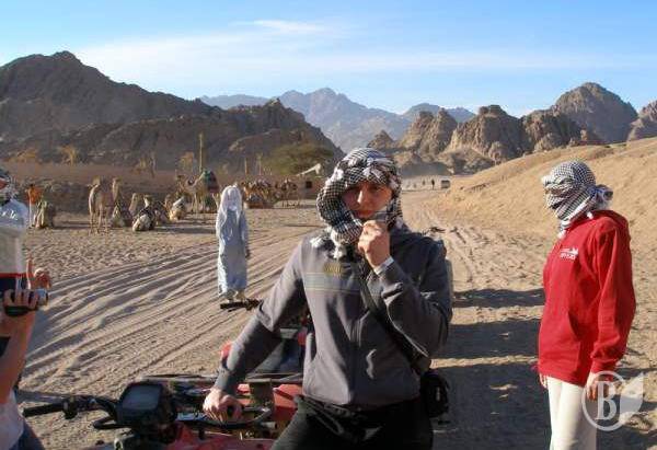 Сразу гид рассказывает, что Египет на 92% - пустыня, а жизнь бурлит лишь вдоль реки Нил. 76 млн. населения старается выжить в пустыне. Вдоль всей дороги до гостиницы в Таби - горы вулканического происхождения, никакой растительности, лишь кое-где смогло вырасти маленькое деревце.