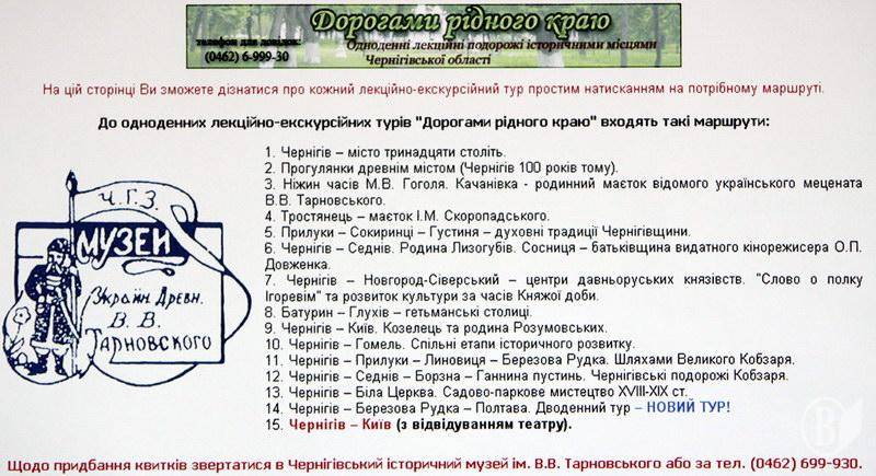 Два роки триває екскурсійна програма "Дорогами рідного краю", започаткована Чернігівським історичним музеєм імені Василя Тарновського.