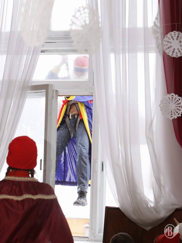Новогоднее утро для детворы состоялось сегодня в школе №14 города Чернигова. Оригинальным решением стало проникновение деда Мороза в окно во время празднования.