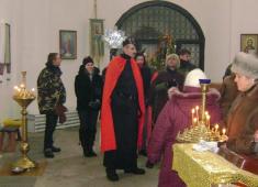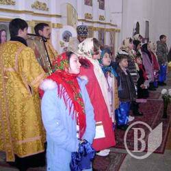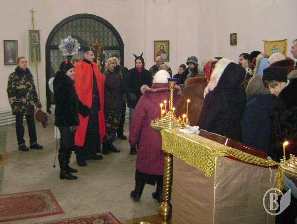 После Богослужения детский хор пропел традиционные колядки, а затем начался Вертеп - веселое театральное действо, где героями были как традиционные народные персонажи, так и навеяные современностью - это "Черт" и "Чертиха", "Сантехник" но "Слесарь" ЖКХ, "Янгол", "Бешеная ведьма Конотопа Наташка", "Ирод", "Украинский солдат-спецназовец Ефим".