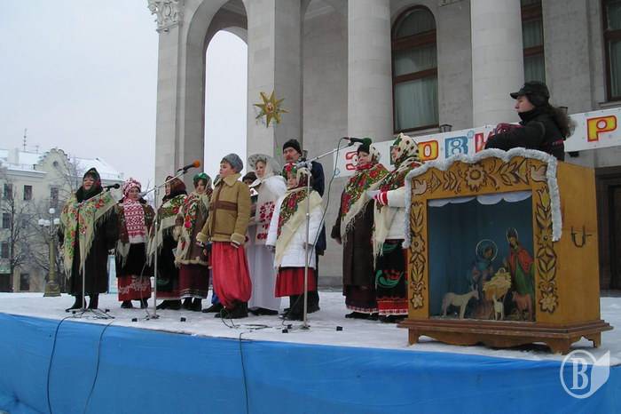 На центральной площади Чернигова, невзирая на рождественский мороз, был проведен традиционный Рождественский Вертеп.