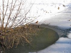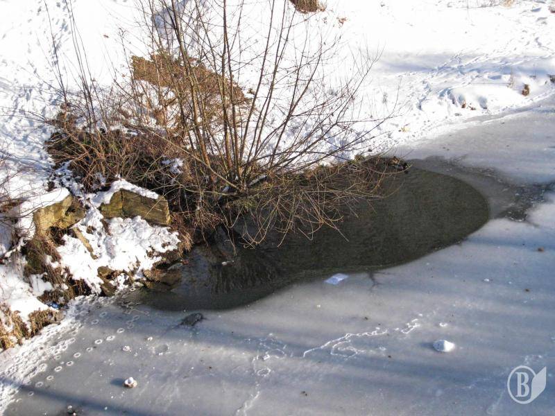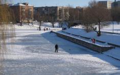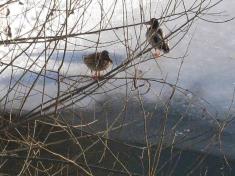 Грязная река Стрижень замёрзла. Но не полностью. Оставив место для купания уткам. Что они и делают. Одновременно наблюдая за катанием на коньках.
