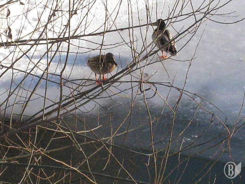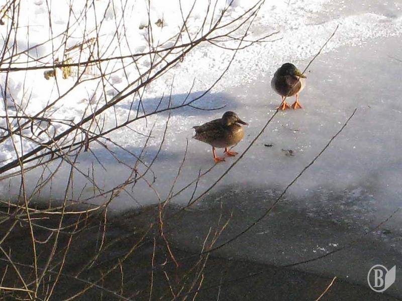 Так они мирно и сосуществуют: люди ходят по льду, катаются, а утки делают своё дело.