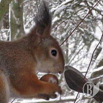 Не бедствуют и пушистые рыжие красавицы – белочки. Они лакомятся своей добычей, прыгают с ветки на ветку и пытаются схватить всё, чтобы не досталось птицам – голубям и синицам. Естественной отбор, что же поделаешь!