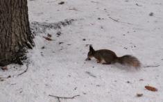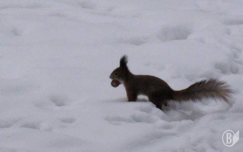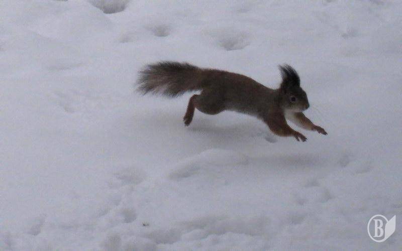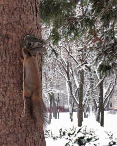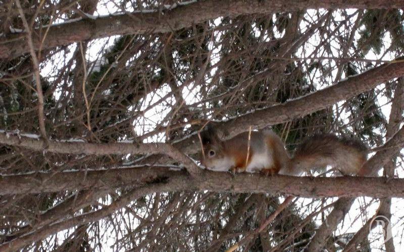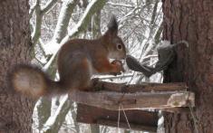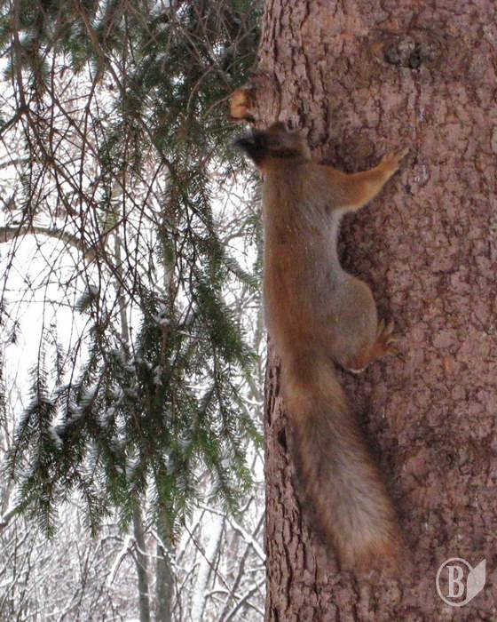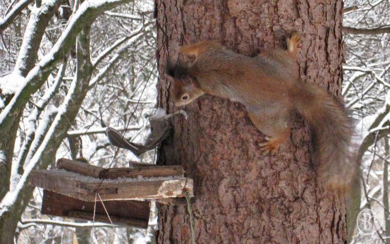 Не бедствуют и пушистые рыжие красавицы – белочки. Они лакомятся своей добычей, прыгают с ветки на ветку и пытаются схватить всё, чтобы не досталось птицам – голубям и синицам. Естественной отбор, что же поделаешь!