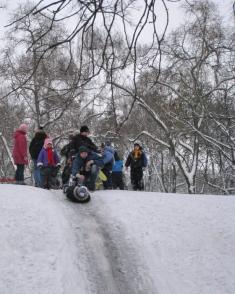 Как знать, может и в настоящий момент дух княжеской жизни бурлит там в воздухе. Но отдыхающие, кажется, вовсе не задумываются над этим. А детвора просто в восторге – полёт с горы на всех подручных материалах – захватывает дух.