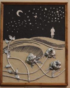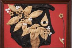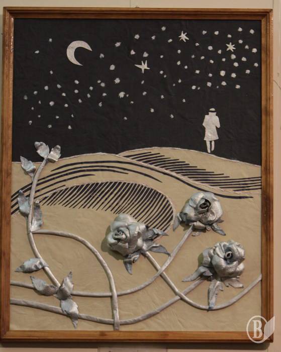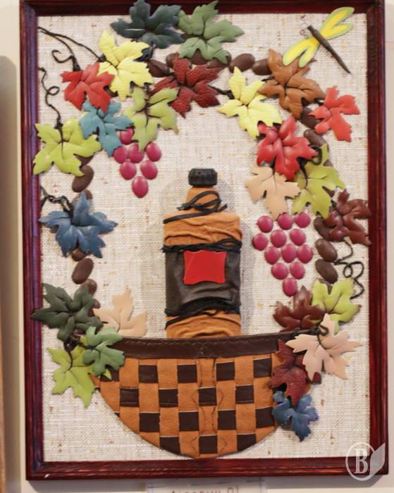 На выставке представлены картине из кожи, выработанные А.Дидович и картины и творения из дерева Дмитрия Зуганова.