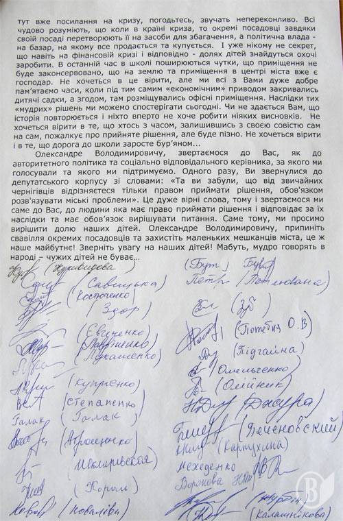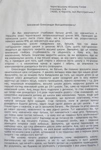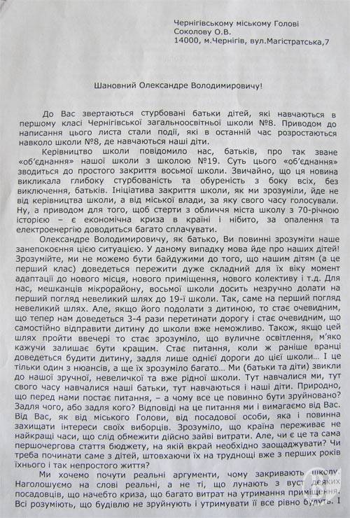 Это письмо в редакцию «Высокого Вала» занесли родители детей первоклассников черниговской школы № 8 и привели свои аргументы против закрытия этой школы в Чернигове.