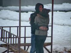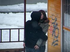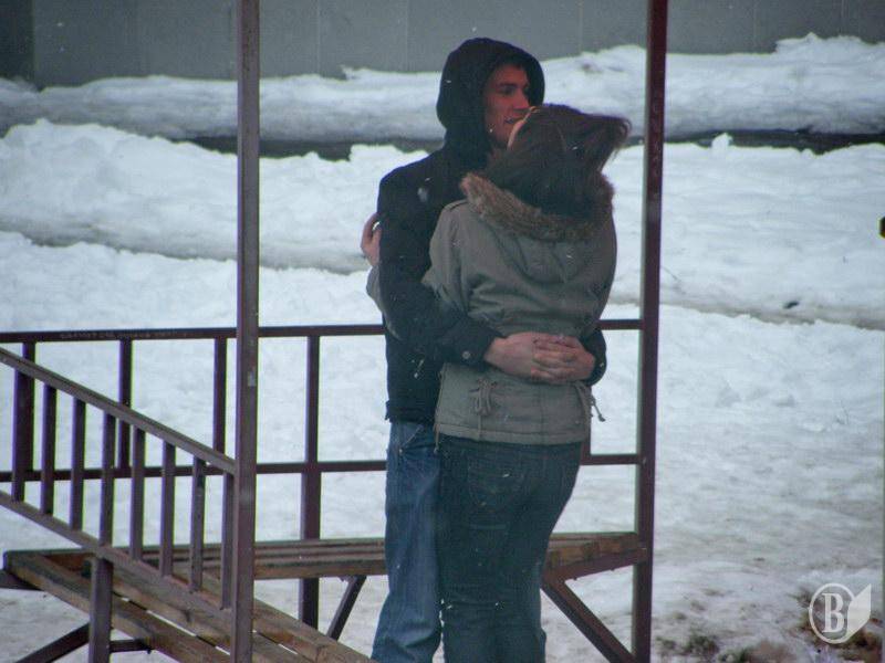 Интересная парочка. С одной стороны выглядывают автобус, как будто спешат. С другой стороны – им явно не до спешки.