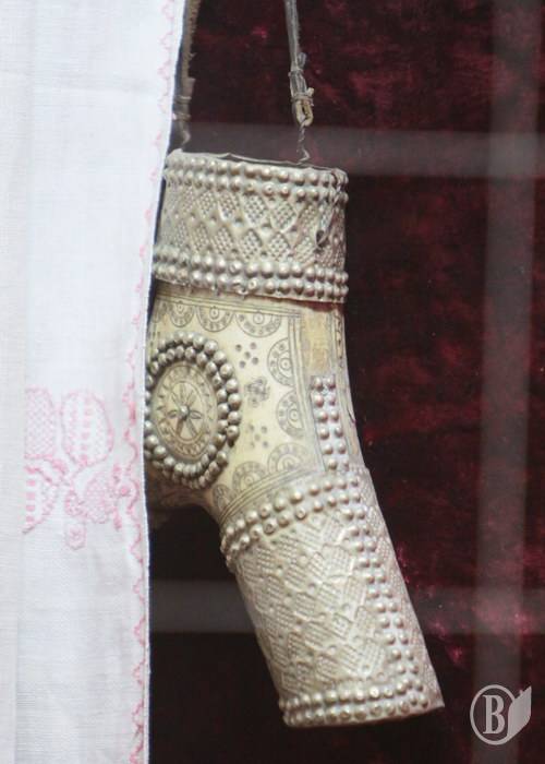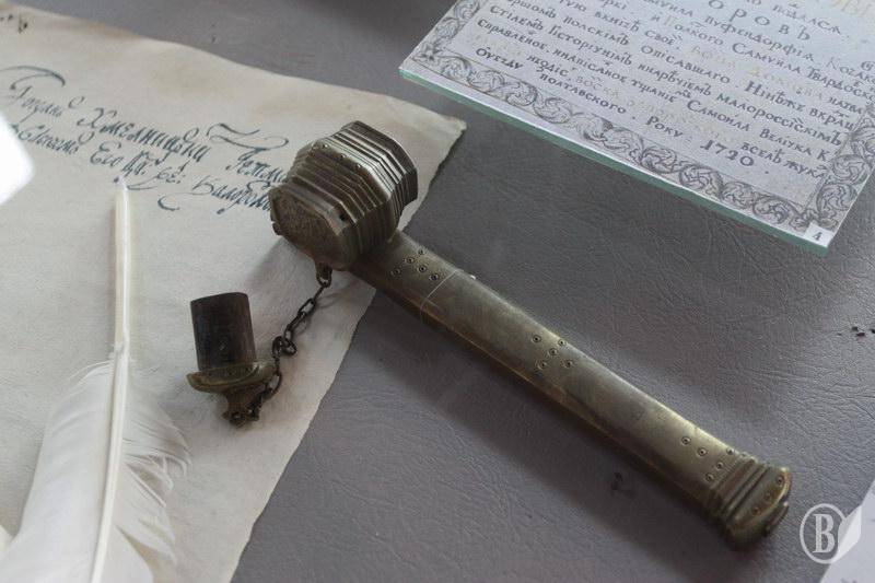 Очень интересной вещью является запоясная чернильница казацкого писаря. Один из экспонатов – похожая на крынку мортырка-солютовка гадяцкого полковника Ивана Черныша, который вместе с Полуботком ездил к московскому царю с просьбой возобновить гетманскую власть в Украине.