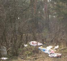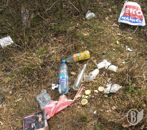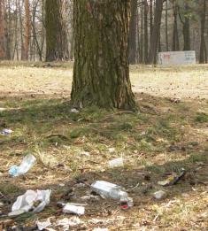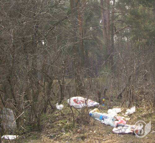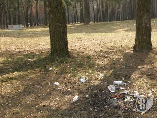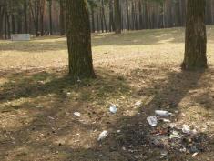 Сколько молодым людям пришлось выгребать стекла и упаковок! Но тонны мусора ещё остались среди сосен, берёз и кустарников. Ведь „хавку и пойло” туда не только приносят в руках, но и привозят машинами. К каждой опушке ведут свеженькие следы автомобильных шин.
